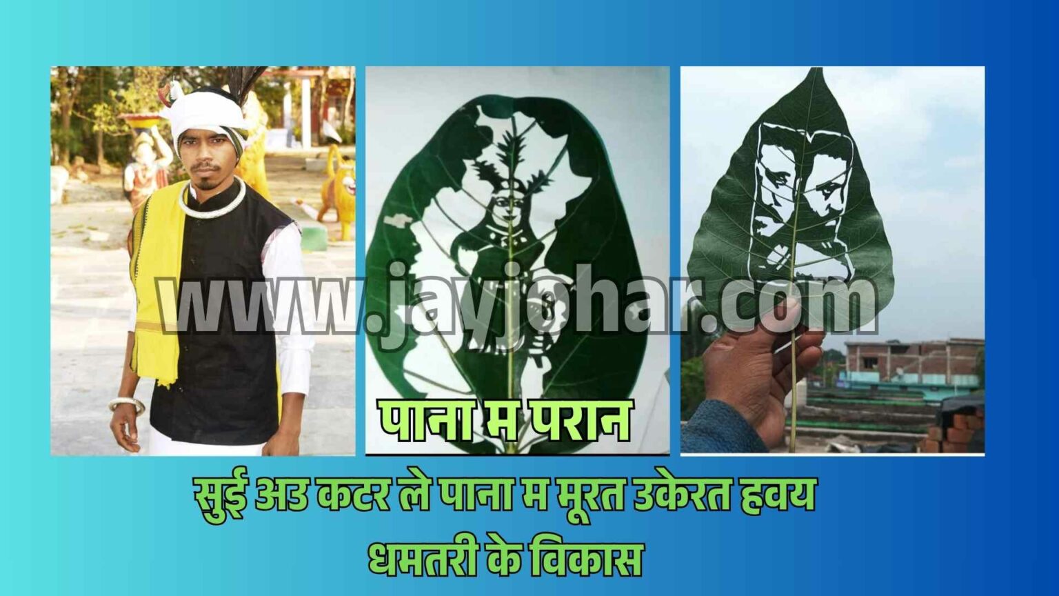 धमतरी। कला कोनो सीमा के मोहताज नई होवय, अउ जब लगन मन म होवय त ओखर माध्यम घलो नवा मिल जाथे। छत्तीसगढ़ के धमतरी जिला म एक अइसने हुनरमंद कलाकार हवय, जऊन ह कोनो कागज या कैनवास म नई, बल्कि रुख-राई के झरत हुए पाना मन म परान फूंकत हवय। हम बात करत हन ग्राम मोदे (नगरी-सिहावा) के विकास शांडिल्य के, जेकर “लीफ आर्ट” (Leaf Art) आज छत्तीसगढ़ सहित पूरा देश म चर्चा के विषय बन गे हवय।